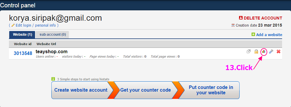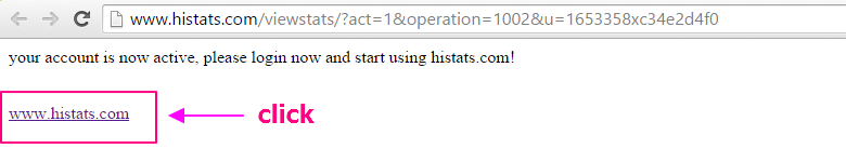 11. คลิ๊กที่ link เพื่อเข้าหน้าเว็บไซต์ histats.com
