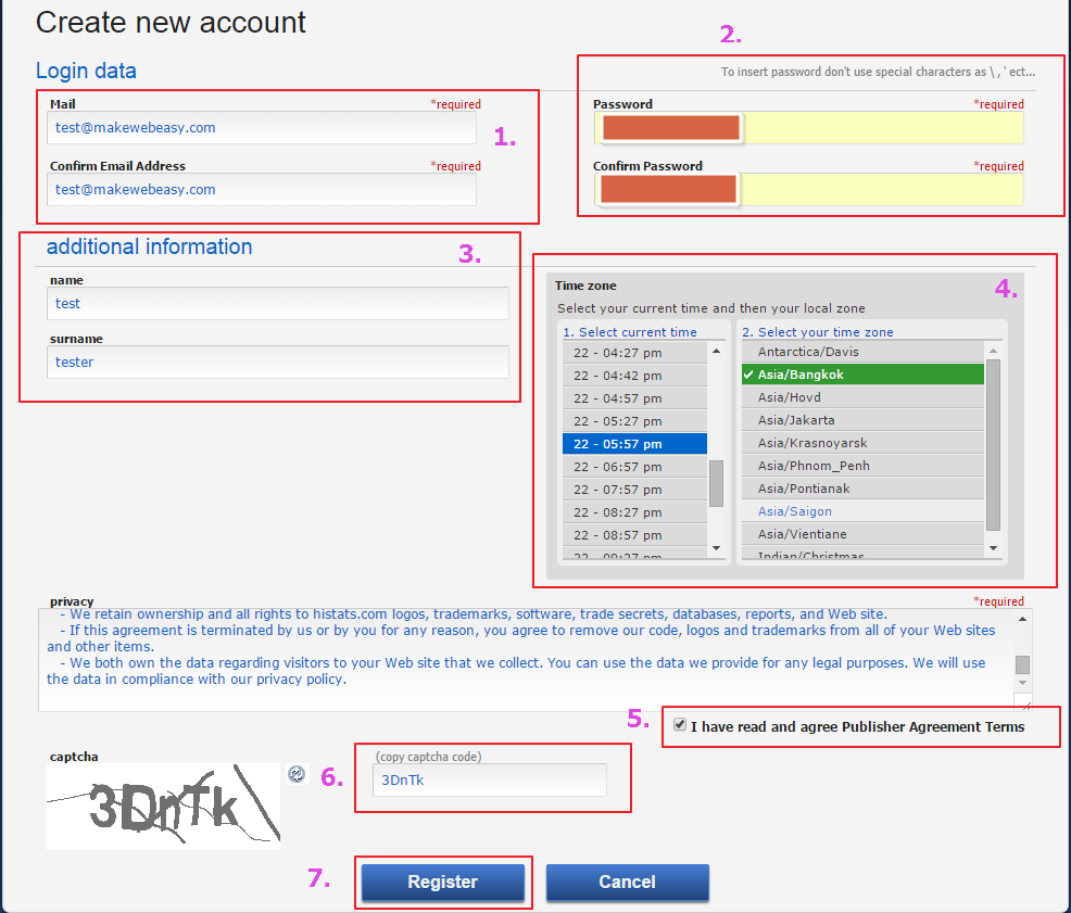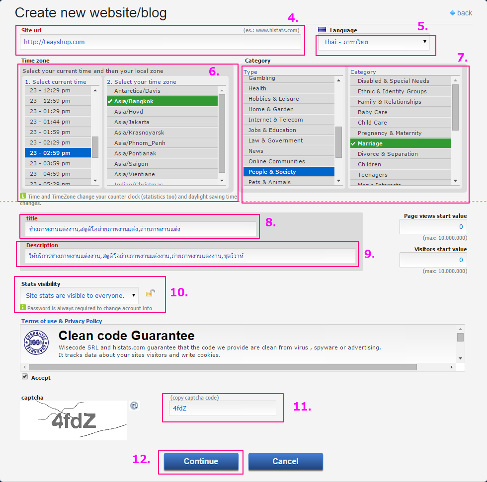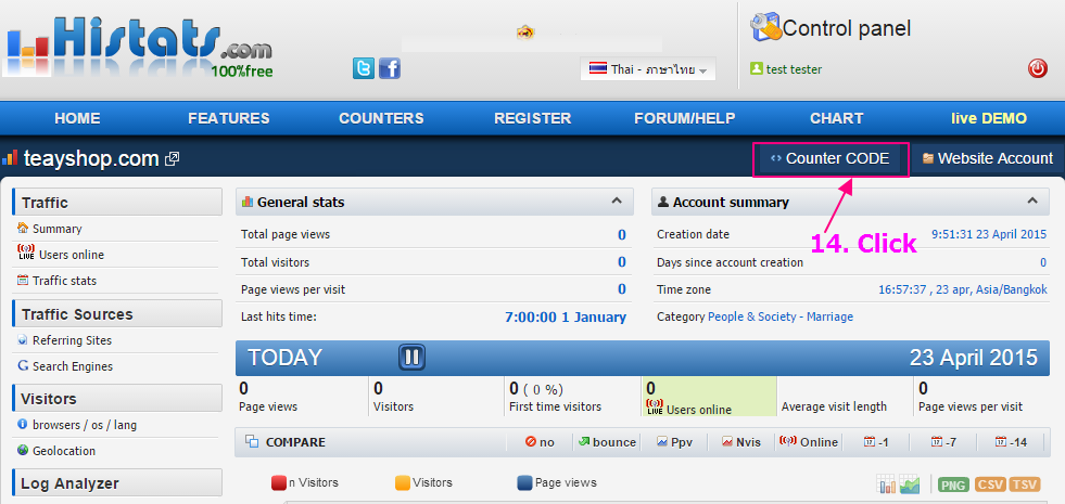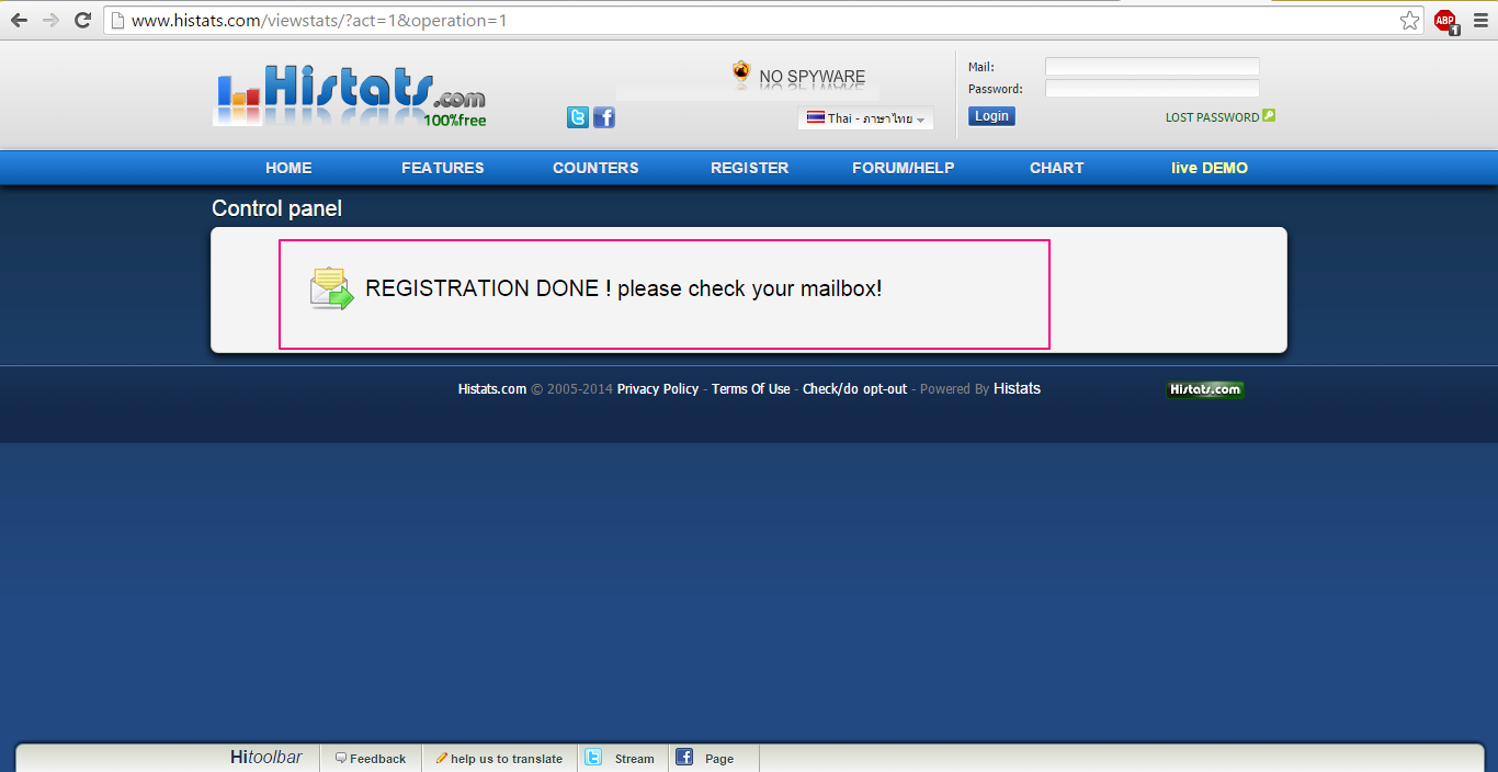 การสมัครใช้งาน histats.com เพื่อรับโค้ดมาติดตั้งที่เว็บไซต์ของเรา