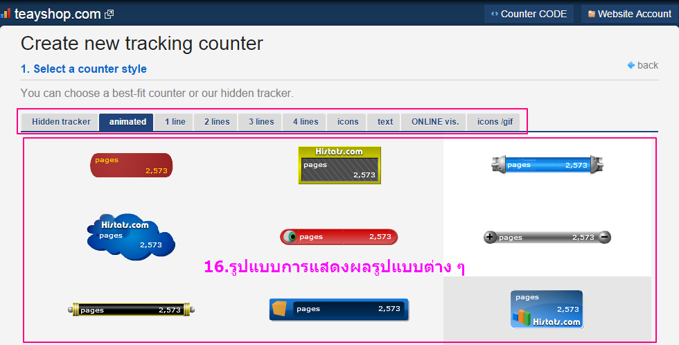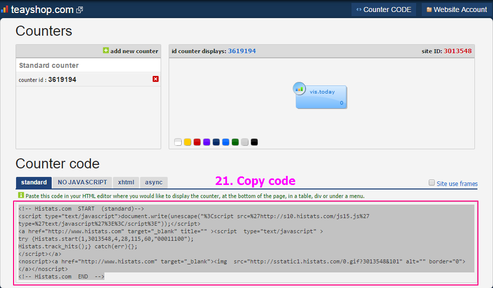 21. ระบบแสดงหน้า Counter Code ขึ้นมา คลิก copy code เพื่อไปใส่ในเว็บไซต์ของเรา