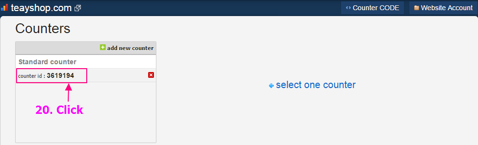 20. แสดง Counter id ของตัวนับผู้ชม ให้เราคลิกที่ Counter ID