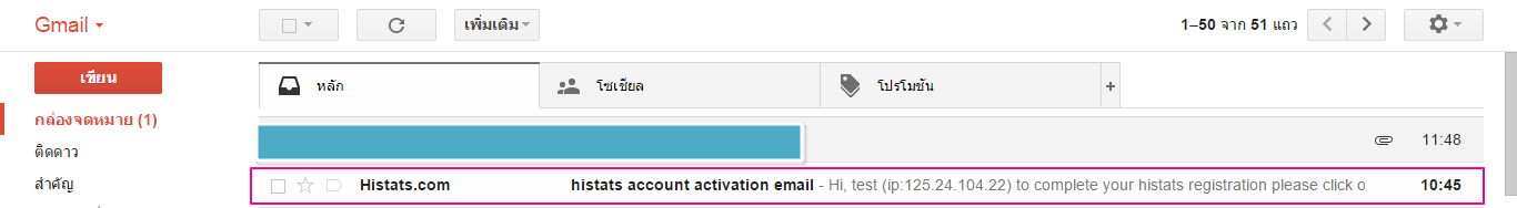 9. แสดงตัวอย่างอีเมล์ที่ได้รับจากการสมัคร histats