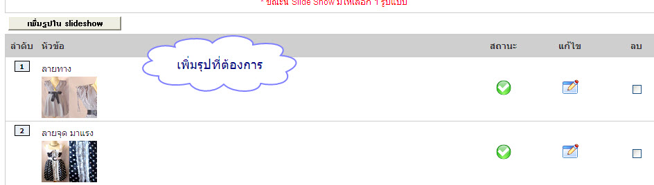2. เลือก slideshow แล้วมาคลิกแก้ไขเนื้อหาโซนที่ได้เลือกไว้